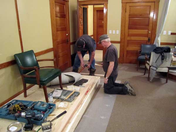 The upstairs meeting room has been completely redone with new platforms built, new drapes, chairs brought in from the previous hall in Newcastle, and the walls will soon be getting a fresh coat of paint.