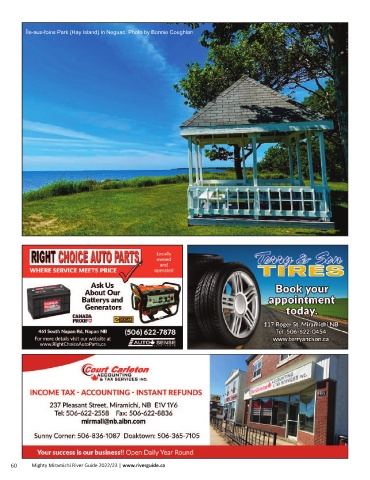 Île-aux-foins Park (Hay Island) in Neguac. Photo by Bonnie Coughlan 60 Mighty Miramichi River Guide 2022/23 | www.riverguide.ca