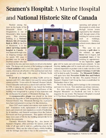 National Historic Site. Miramichi Heritage Inc. is proud to Seamen’s Hospital decorated for a wedding.