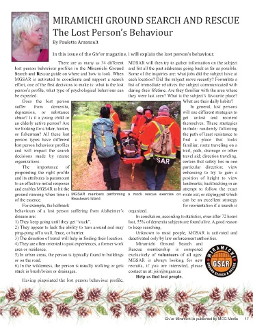 In this issue of the Giv’er magazine, I will explain the lost person’s behaviour.